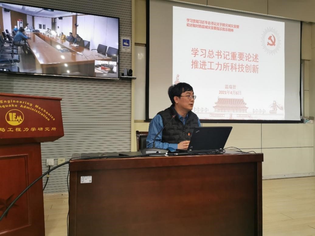 溫瑞智主任同與會科技人員一道共同學(xué)習(xí)了習(xí)近平總書記關(guān)于防災(zāi)減災(zāi)救災(zāi)重要論述和防災(zāi)減災(zāi)救災(zāi)重要指示批示精神,對創(chuàng)新在國家發(fā)展全局中處于核心地位分享了自己的認(rèn)識和思考。科技創(chuàng)新要堅(jiān)持政治引領(lǐng),貫徹落實(shí)習(xí)近平總書記“兩個(gè)堅(jiān)持”“三個(gè)轉(zhuǎn)變”重要論述和“以防為主、防抗救相結(jié)合”的工作方針。溫主任結(jié)合我所科研工作實(shí)際,系統(tǒng)介紹了近年來科技創(chuàng)新工作取得的進(jìn)展和成績,結(jié)合自然災(zāi)害防治、韌性城鄉(xiāng)、地震應(yīng)急和科考等生動地闡述了唯有科技創(chuàng)新才是推進(jìn)防震減災(zāi)事業(yè)現(xiàn)代化建設(shè)高質(zhì)量發(fā)展的重要動力。最后,溫主任用“夯實(shí)監(jiān)測基礎(chǔ)、加強(qiáng)預(yù)報(bào)預(yù)警、摸清風(fēng)險(xiǎn)底數(shù)、強(qiáng)化抗震設(shè)防、保障應(yīng)急響應(yīng)”作為培訓(xùn)報(bào)告的結(jié)語,表達(dá)了工力所廣大科技工作者踐行“防震減災(zāi),造福人民”的初心使命。