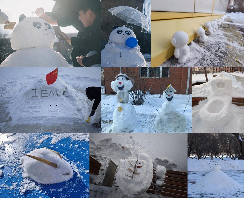 伴著冬日的暖陽,研究生們?nèi)宄扇壕奂谖宜鱾€角落,他們手持鏟子和搜集來的各種工具熱情洋溢地準備著,有人運雪、有人滾雪球、有人塑形、還有人在精心地裝扮雪人,同學們忙得不亦樂乎,盡情享受著堆雪人比賽帶來的激情與快樂,仿佛把自己真摯的情感也融入了雪花之中。同學們充分發(fā)揮想象力和創(chuàng)造力,創(chuàng)作出各種各樣的雪人作品。這些雪人有的造型別致、有的栩栩如生、有的趣味十足,讓人忍俊不禁,充滿著冬季的歡樂與活力,成為工作區(qū)中一道道靚麗的風景。經(jīng)全所職工共同參與,最終評選出優(yōu)秀作品3個。