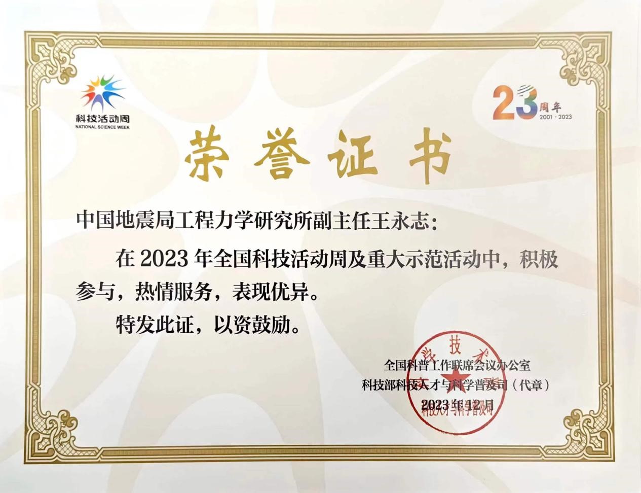 我所在2023年全國(guó)科技活動(dòng)周工作中受表彰