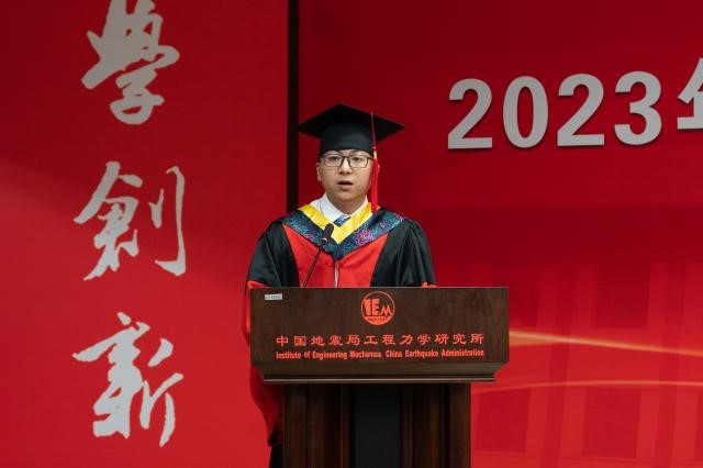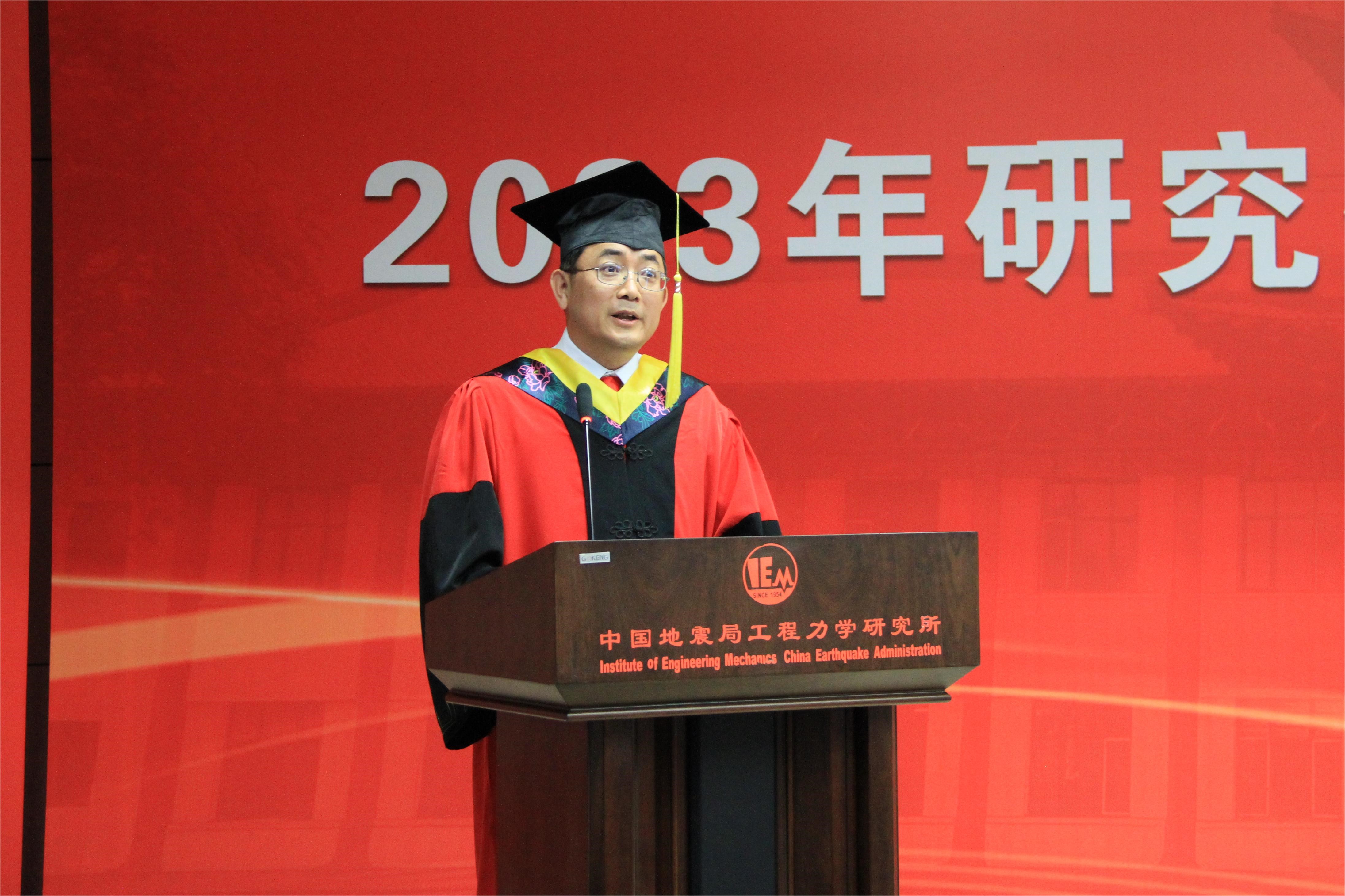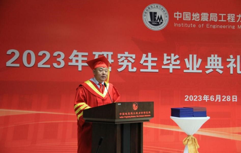 發布時間: 2023-06-30 點擊數量:95506月28日下午,中國地震局工程力學研究所2023年畢業典禮暨學位授予儀式在主樓四樓會議室隆重舉行。所學位評定委員會主任孫柏濤,黨委書記、所長李山有,黨委副書記張孟平,紀委書記孔繁鈺,副所長張令心、溫瑞智出席學位授予儀式。溫瑞智主持儀式。