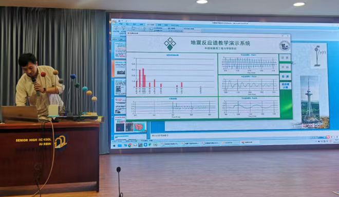 作為《新課程改革下高中物理校本課程體系初探》課題活動的內容,張昊宇副研究員作了題為《防震減災漫談》的講座,就如何看待地震預報、地震作用的工程計算方法及其發展、典型抗震構造措施及地震應急避險四個話題與同學們展開了交流和互動。講座以典型地震謠言造成的危害為例,介紹了如何正確對待地震預報;借助地震反應譜科普模型,張昊宇老師與多位同學開展了科普試驗互動,生動展現了結構振動特性、共振現象及地震反應譜的基本概念;介紹了反應譜法的科技發展史后,結合砌體結構抗震模型,講解了砌體結構的抗震措施,通過典型震害展示了抗震措施的重要作用;最后還為師生介紹了地震應急避險的位置選擇、避險姿勢、疏散方法等。張昊宇老師的講座生動形象,把對知識和科學興趣的種子種在了同學們心里。