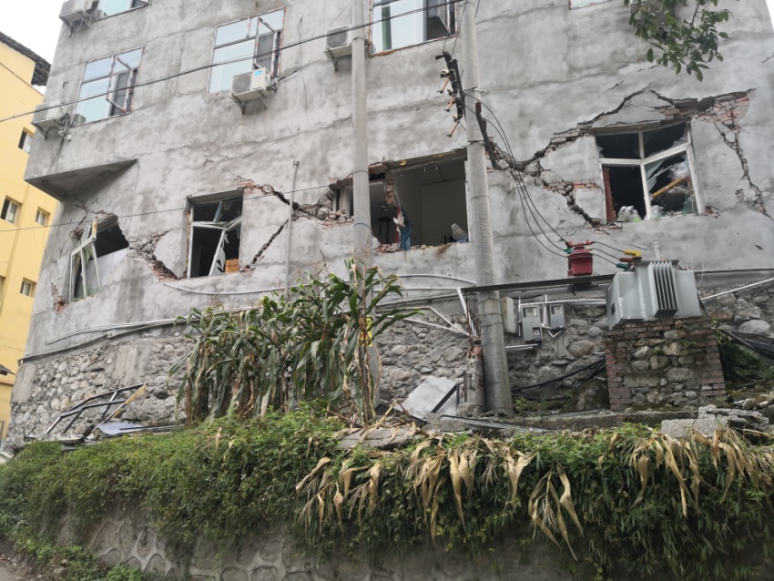 康定線科考組在磨西鎮(zhèn)考察了房屋的震害,重點(diǎn)關(guān)注了張貼紅色破壞標(biāo)識(shí)的房屋。房屋主要類型以底層框架磚混結(jié)構(gòu)為主,包含少量的框架結(jié)構(gòu)、磚木結(jié)構(gòu)等,其中磚混結(jié)構(gòu)房屋破壞多集中在1層,上部樓層破壞較輕微,且部分房屋的破壞程度比較嚴(yán)重,房屋完全無法使用。