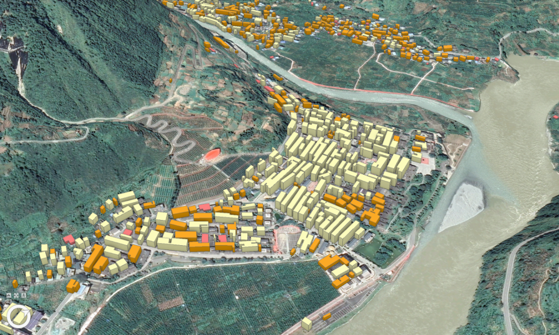 圖1 災(zāi)區(qū)建筑物三維模型(磨西鎮(zhèn)及其周邊)