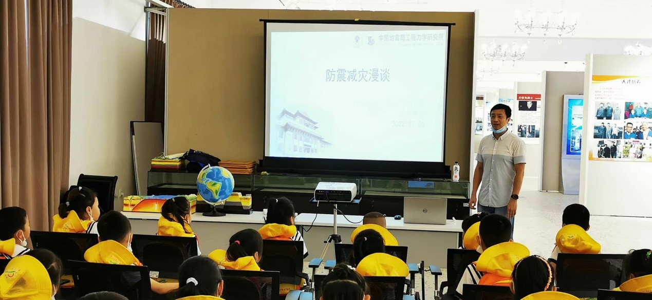 發(fā)布時間: 2022-07-07 點擊數(shù)量:9577為更好的宣傳防震減災(zāi)知識,從小培養(yǎng)幼兒防震減災(zāi)意識,蘭寧幼兒園于7月7日到我所開展了豐富多彩的地震科普宣傳活動。