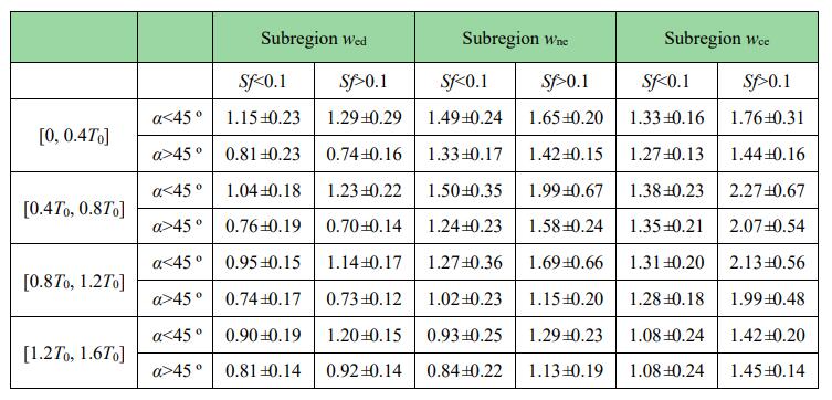 表1 各子區域內不同周期放大系數