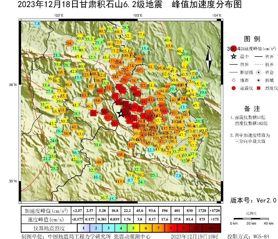圖2甘肅積石山6.2級地震峰值加速度分布圖(單位:cm/s2)