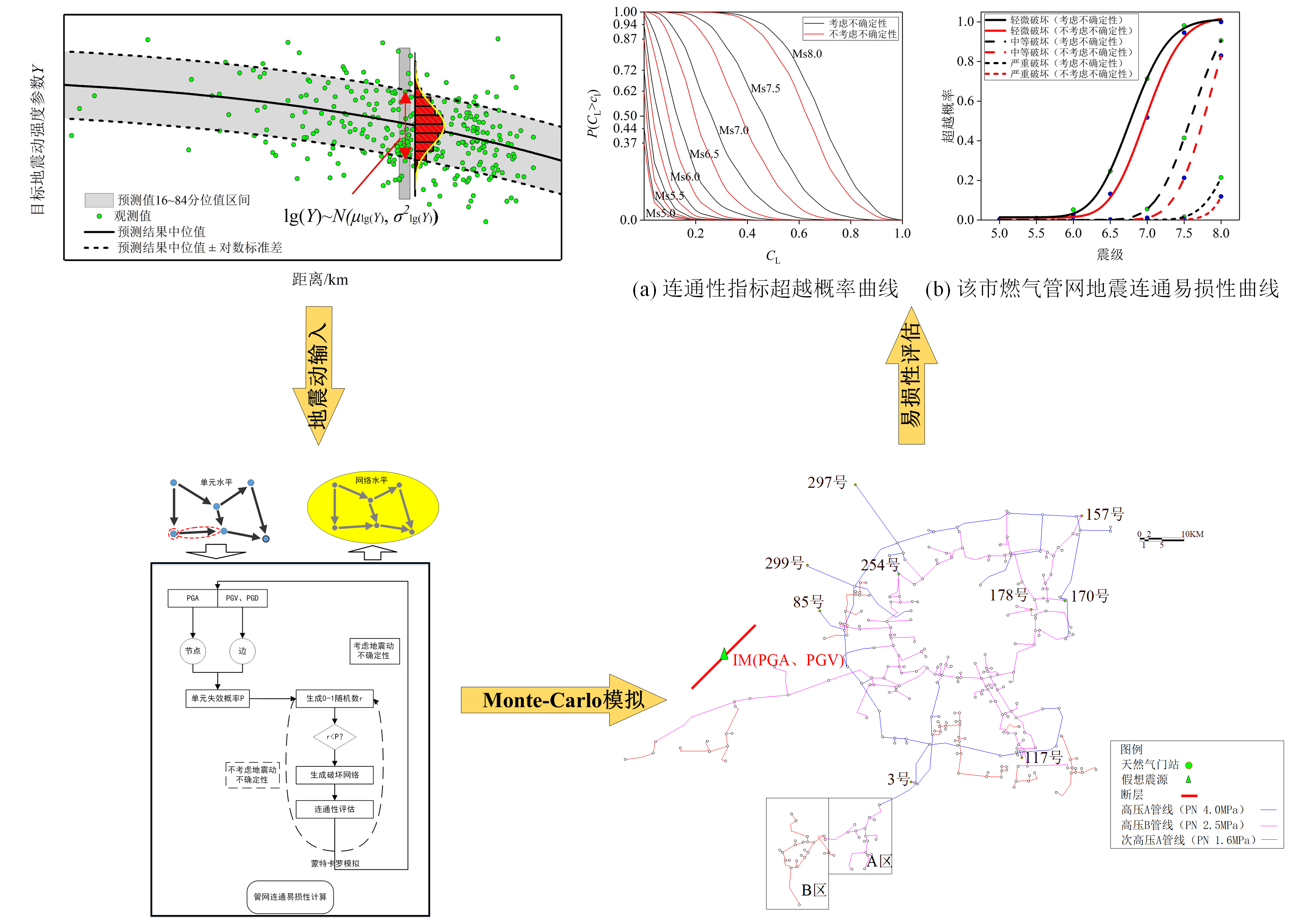 圖2 城市燃?xì)夤芫W(wǎng)抗震韌性定量評估流程與結(jié)果
