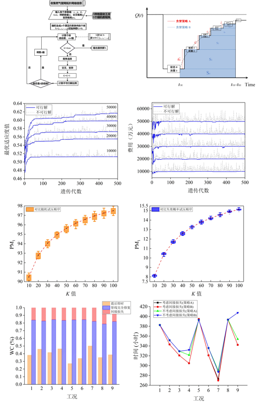 (3)將城市燃?xì)夤芫W(wǎng)的抗震、救災(zāi)過程分為三個階段,基于不同的計算機優(yōu)化方法對各階段的抗震韌性進行提高。第一階段在有限的政府資金預(yù)算下,利用自適應(yīng)比例與直接比較-遺傳算法(FPDC-GA)得到震前最優(yōu)加固或更換管道的方案,以最大化燃?xì)夤芫W(wǎng)的抗震魯棒性。第二階段根據(jù)震后中斷供氣的用戶端節(jié)點分布情況,采用多標(biāo)簽K近鄰算法(ML-KNN)預(yù)測震后泄漏管道,計算震后優(yōu)化的管道試壓順序,以達(dá)到高效率排查失效管道從而快速進入修復(fù)階段的目的。第三階段基于貪心策略提出一種震后管道修復(fù)順序優(yōu)化方法,以提升燃?xì)夤芫W(wǎng)功能恢復(fù)的效率。將這三階段提升方法應(yīng)用于中國華北某城市燃?xì)夤芫W(wǎng)抗震韌性提升工作中,驗證了所提方法的可行性。相關(guān)技術(shù)細(xì)節(jié)可查閱發(fā)表在《Soil Dynamic and Earthquake Engineering》上的論文。