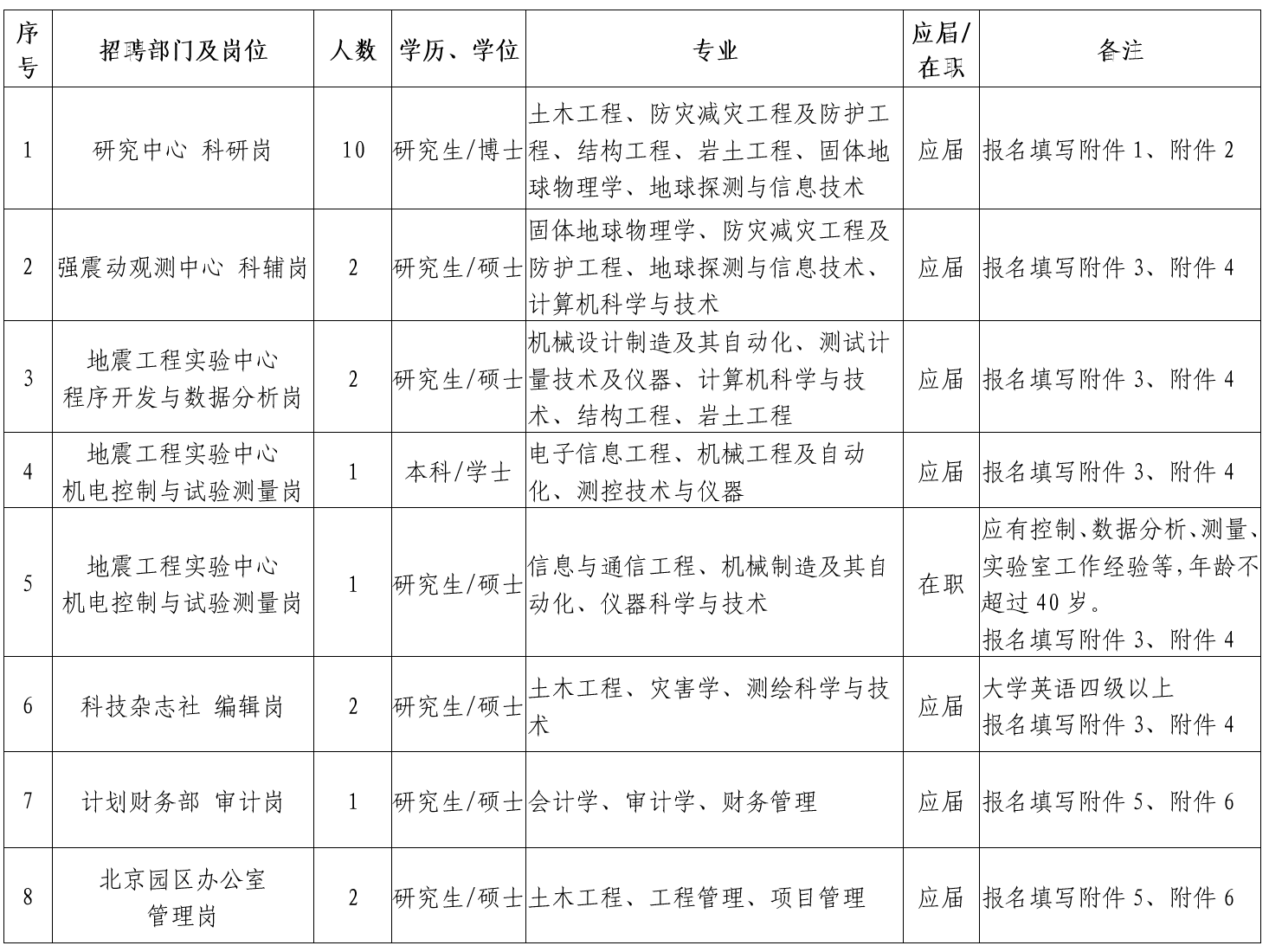 (2)熱愛防震減災科研事業,能全職在研究所相關學科科研崗位上工作,年齡一般不超過35周歲,科研成果特別突出者,年齡可適當放寬。