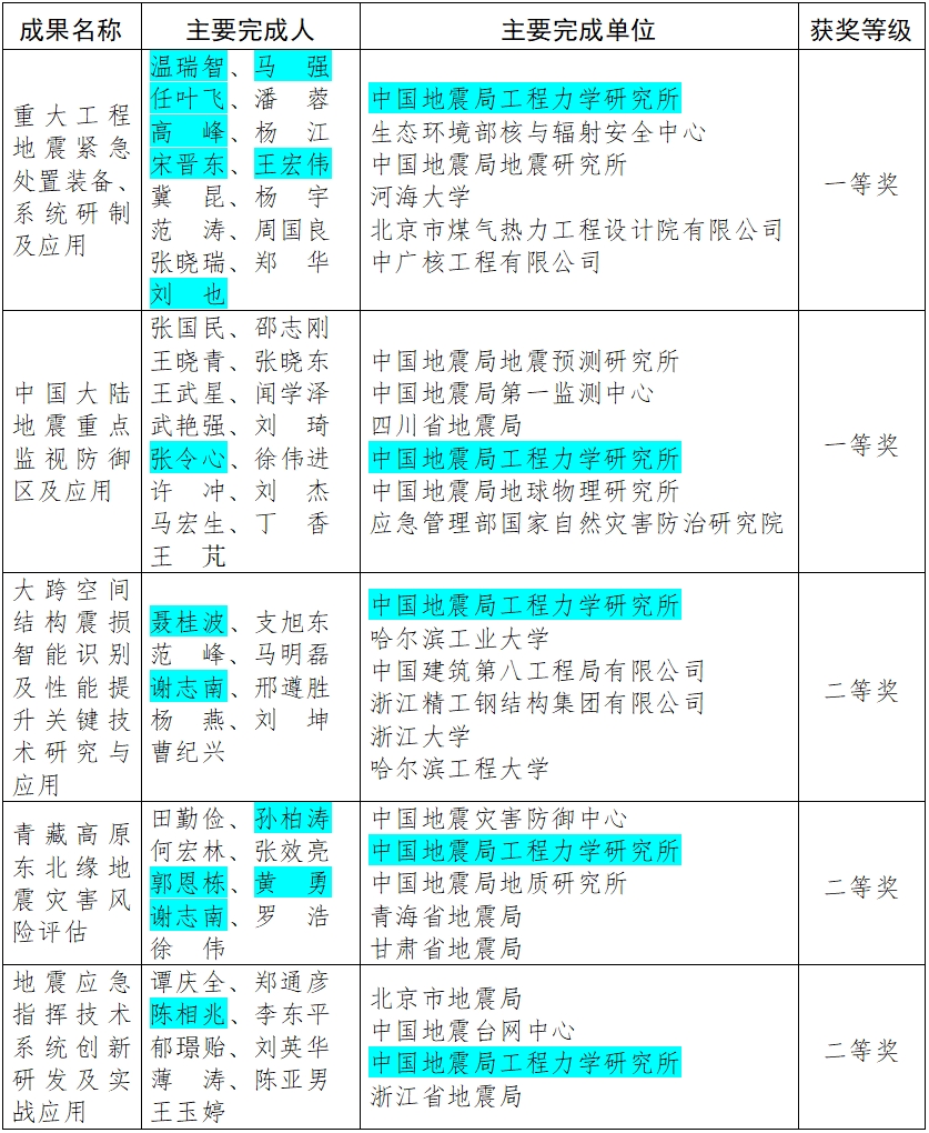 我所多項成果獲中國地震局2025年防震減災科研成果獎